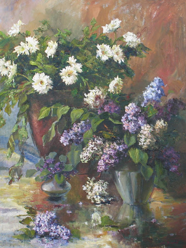 Lilacs and asters - Oil on canvas 40"x 30" - 2007 - Falls Church, VA - Private CollectionLilacs and asters - Detail of the painting - 2007 - Falls Church, VA - Private Collection