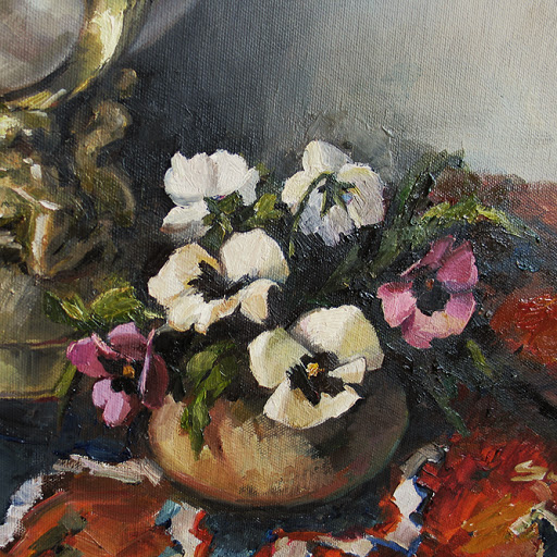 Still-life with pansies - Oil on canvas - 2013 - Gaithersburg, MD -  $2700Still-life with pansies - Detail of the painting -  $2700Still-life with pansies - Detail of the painting -  2700Still-life with pansies - Framed view -  $2700